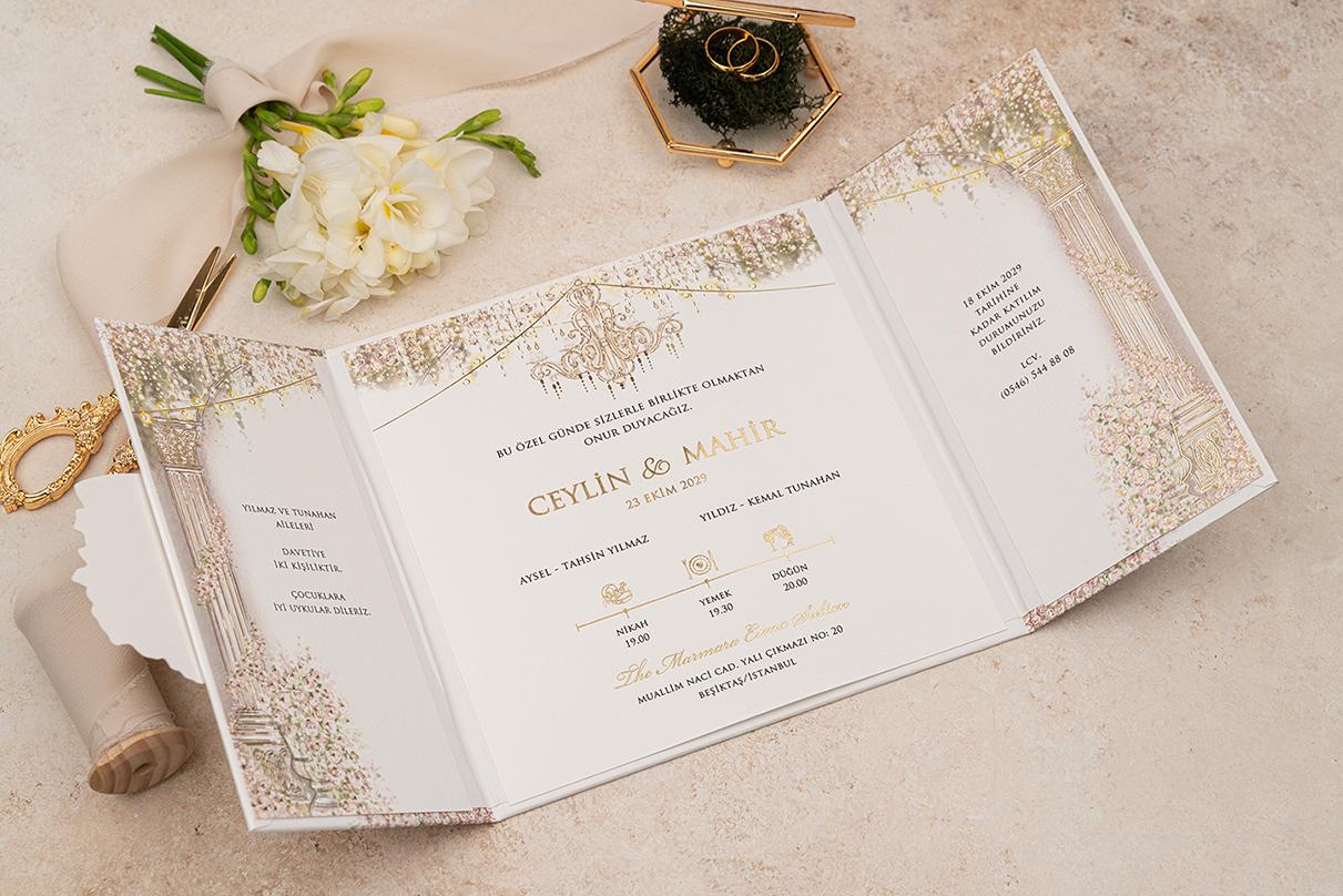 Davetiye Ofset, Varak Yaldız ve Serigraf Boya baskı tekniğine uygun olup,